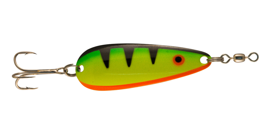 Heavy weighted, nickel plated brass spoons featuring premium proven colour patterns. High quality components include environmentally friendly and durable paints, stainless steel split rings, bonus barrel swivel and Eagle Claw® Lazer Sharp Hooks.