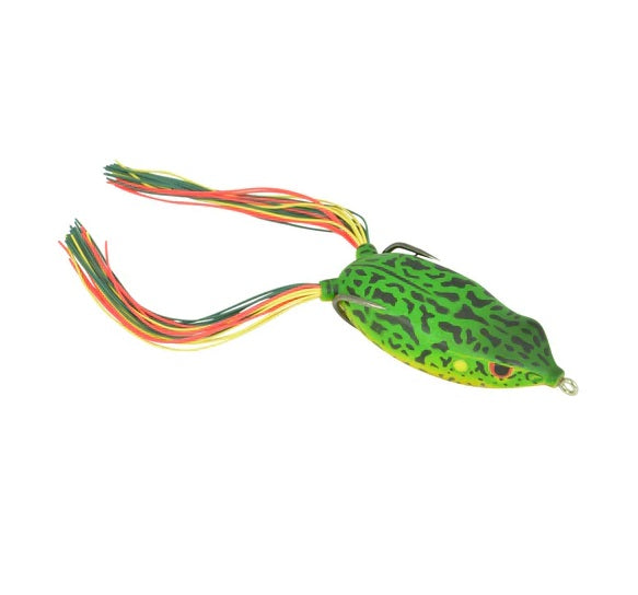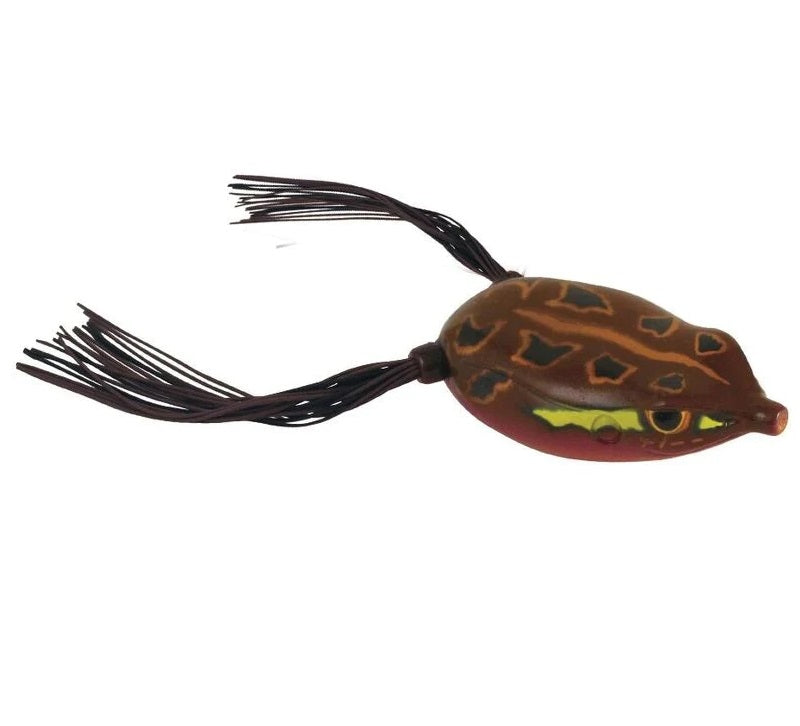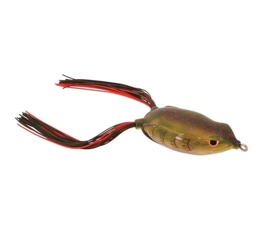 The Bronzeye Frog was designed by MLF Angler Dean Rojas. The Bronzeye Frog is the perfect size and style to be fished in heavy cover or in open water. The Bronzeye Frog was made to cast long distances and specifically weighted to land on its belly. The Bronzeye Frog comes in an array of fish-catching colors.