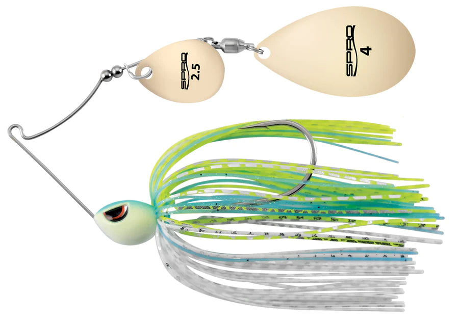 The SPRO Thumper Spinnerbait comes equipped with Gamakatsu Nano Alpha Coated hooks for durability and practical functionality. Each bait comes with a Ball Bearing Swivels, SPRO Mean Eye Head-ideal for hard cover such as rock and timber. Custom hard-thumping Colorado and Indian Blades showcasing printed sizes. This Spinnerbait is perfect for fishing in muddy and stained water.