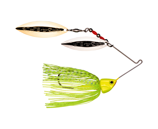 The Strike King Burner spinnerbait has been designed to swim just under the surface of the water all the while creating the flash and attraction to catch the big ones. This compact, minnow shaped head design allows for maximum speed and flash while reducing the drag. The Burner features the all new Raz-R-Blade High RPM Blade. The Raz-R-Blade is a thin cut willow leaf blade that was designed to increase the revolutions of the blade, which increases the flash and keeps the bait from lifting like other willow leaf blades will do. The Raz-R-Blade is the ultimate blade for ultra clear, high speed applications. The Burner also come available in 5 fish catching colors, including the new and very popular Sexy Shad. The burner comes complete with the new perfect skirt, a sharp Gamakatsu hook that hooks em' and hooks em' hard and premium components. Tie one on today and set the water on fire!
