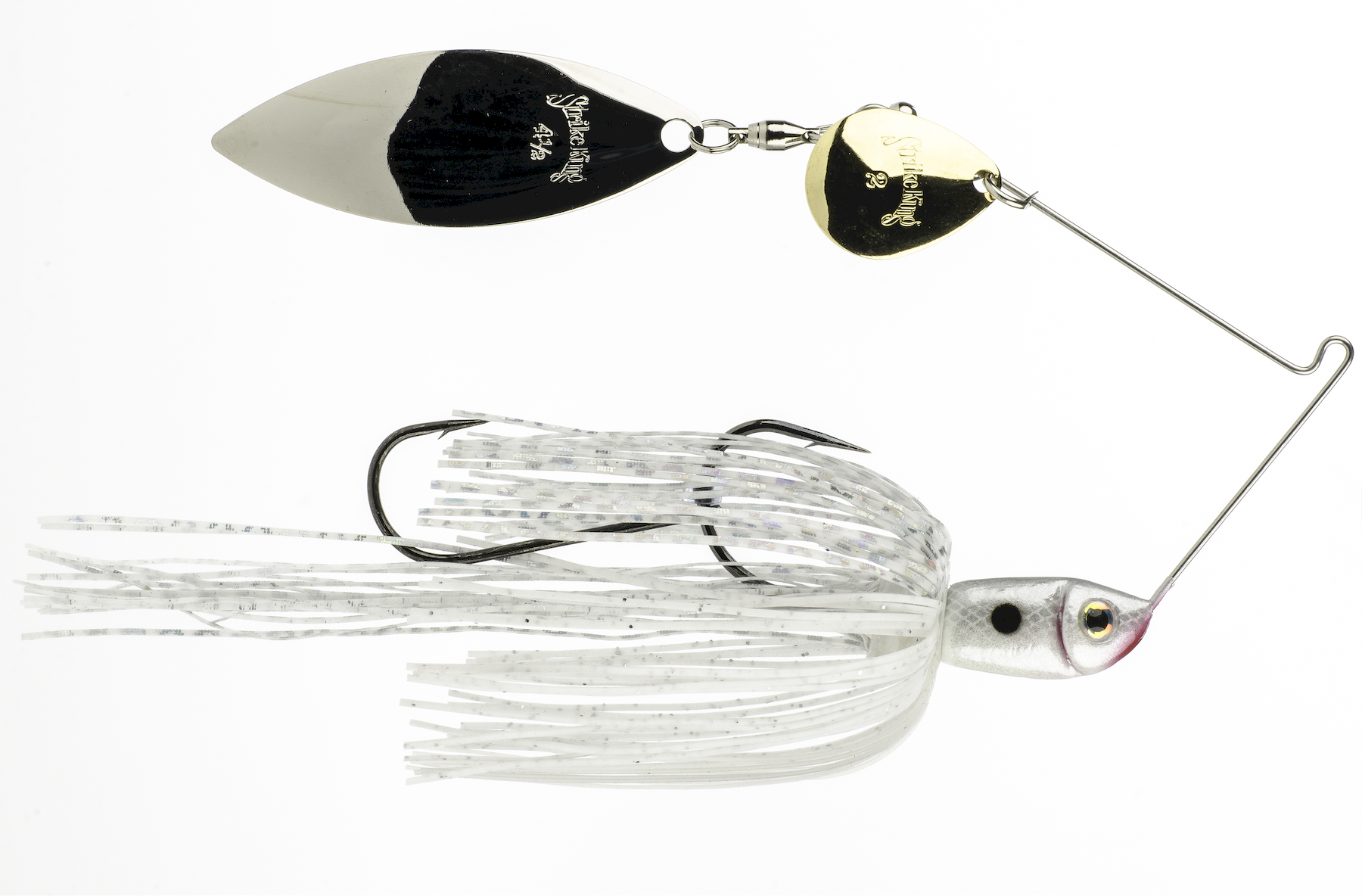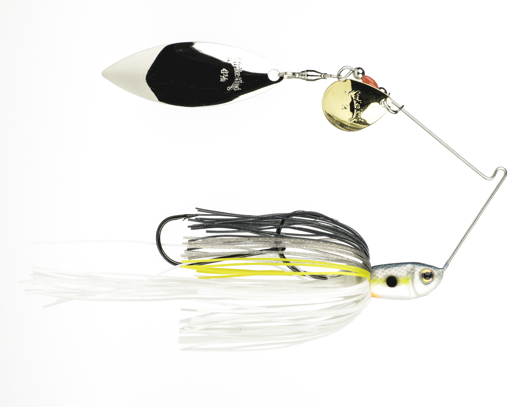 The Strike King® Premier Plus Spinnerbait features the advanced Perfect Skirt with Magic Tails which bloom wide and serve as a trailer, adding extra bulk and strike-tempting action right out of the package. Each Perfect Skirt closely matches the colors of the hand-sculpted baitfish-style head, create an appealing, natural look. Comes pre-rigged with a Sabre Point trailer hook. Double willow blades provide incredible flash and burn, giving you a great searchbait for aggressive bass.