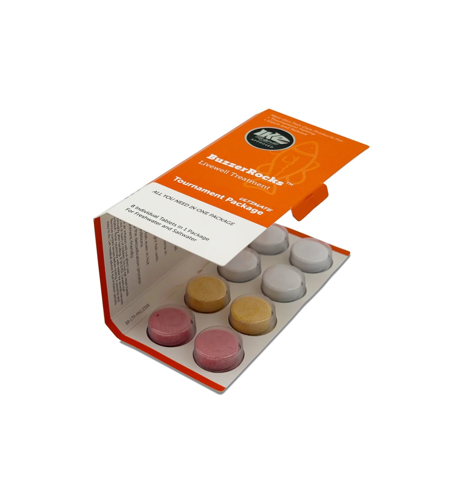 The Ultimate Tournament Package offers the best fish care solution from all perspectives. The package combo comes with individual tablets that increase the dissolved oxygen in the livewell water, removes nitrate and ammonia, relaxes caught fish, and decreases a fishes stress level caused by drastic movement, water temperature variations, and extreme weather. The package also provides vitamins, micronutrients, and Amino Acids to better sustain the well-being of fish kept in a tank / livewell. This pack provides a one-stop solution for all your fish care concerns.