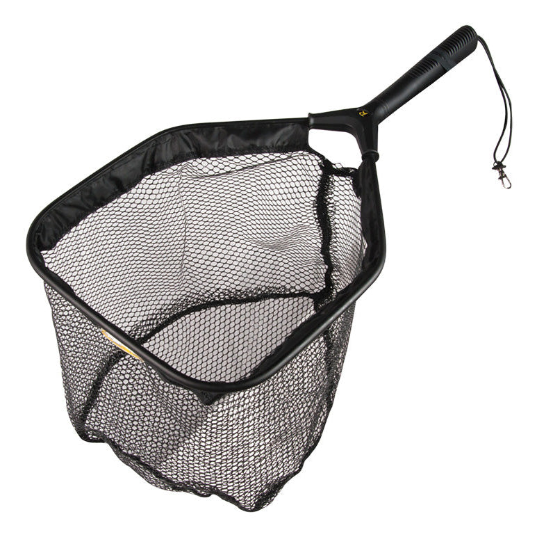- Rubberized no-tangle net for the full fish protection, featuring deep net with flat bottom
