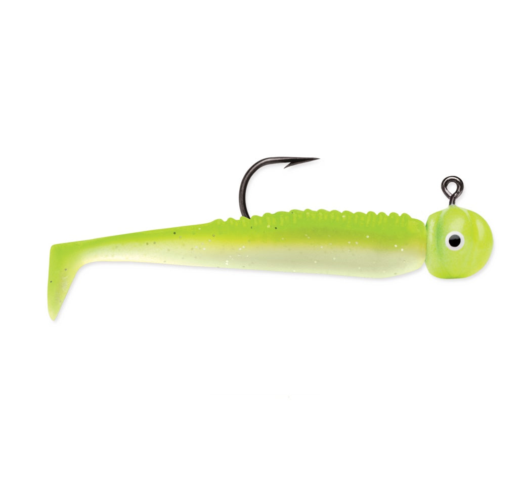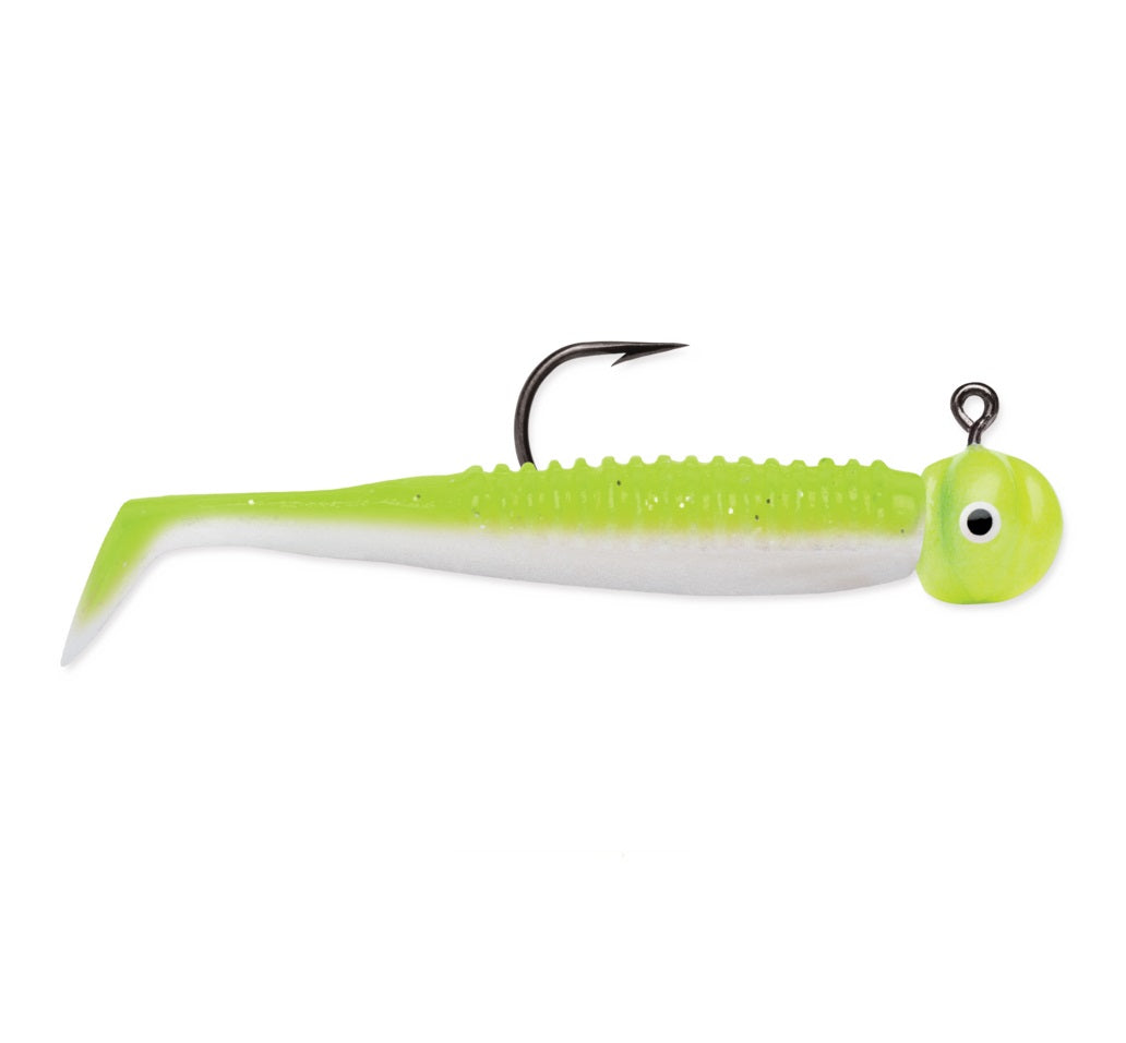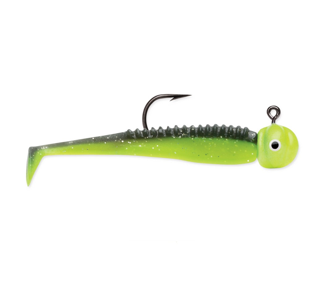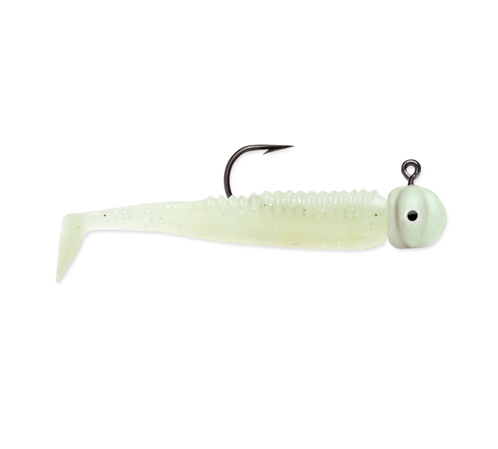The VMC® Boot Tail Jig is pre-rigged with the Boot Tail Minnow soft bait. A life-like fry or minnow profile with the added vibration of the pulsating tail wobbles and wiggles to the tune of a wounded or struggling baitfish. The innovative material attracts fish and maximizes taste and texture to ensure when fish bite they hold on tight! The exclusive VMC Power Gap hook delivers a wider round gap compared to other competitive micro jigs in equal sizes greatly increasing your hook rate percentage. An array of proven fish-catching colors, and the enhanced Ultra Glow pigments, gives the angler every advantage to put more fish in the well. Ultra Glow colors give the anglers up to 15 minutes of charge!
