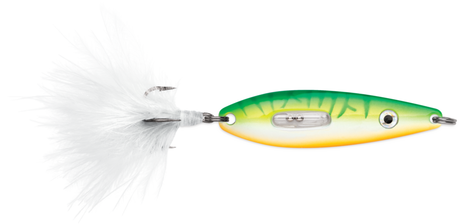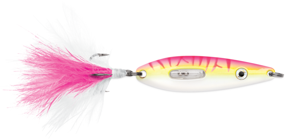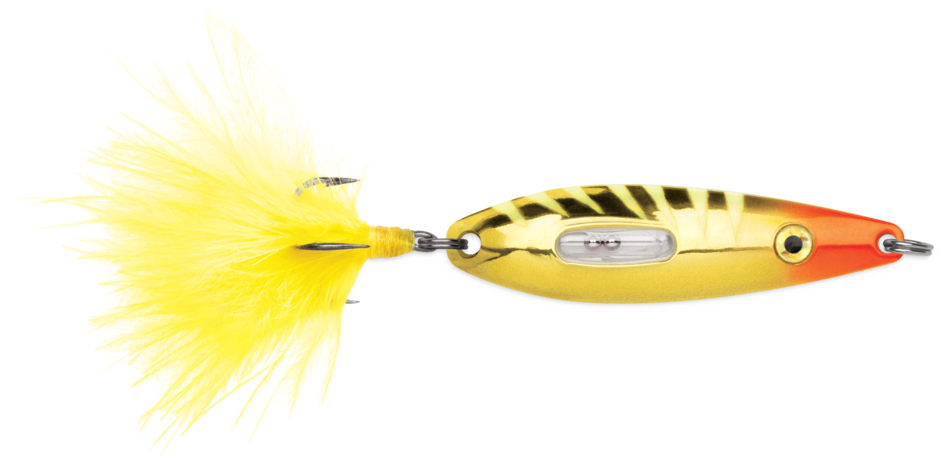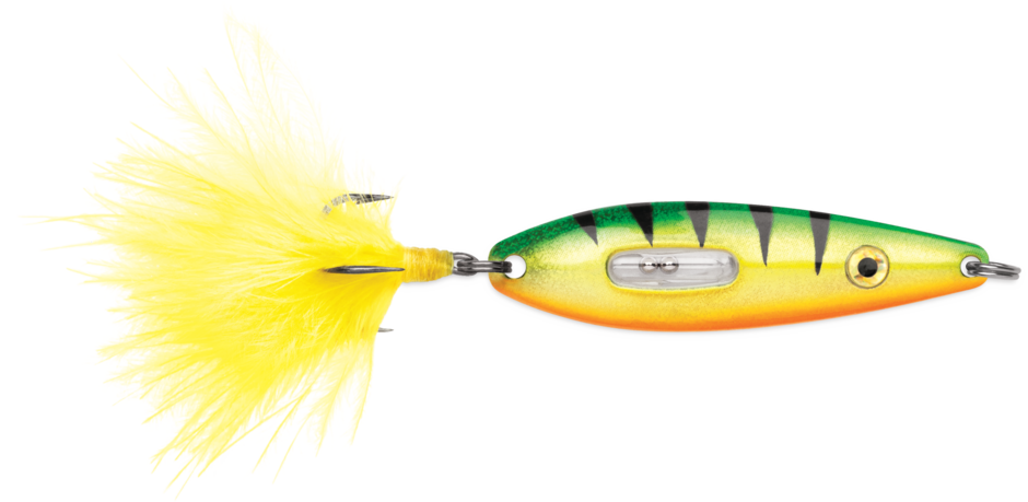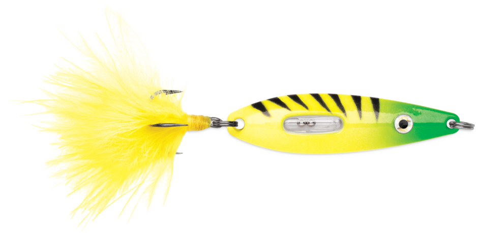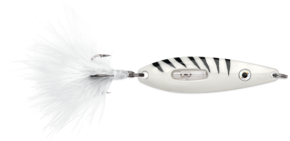 When it’s time to eat, the VMC® Rattling Roach Spoon calls ‘em in. Its intense fluttering action combined with an exposed rattle chamber delivers maximum sound vibrations, grabbing the attention of nearby fish like no other spoon. We’ve dressed the spoon with a marabou teaser tail, which conceals a super sharp VMC® treble hook. Holographic eye and a variety of UV, holographic attractor and live baitfish patterns. Ultra Glow colors last up to 15 minutes.