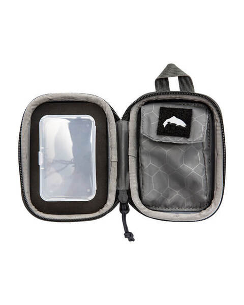 Elevate your angling, protect your prized tackle and make more friends on the water with Simms' most enlightening accessory. Now with extra capacity. Compression molded 600-denier polyester for durability and crush resistance and removable plastic container docks inside. Internal pocket with hook and loop closure for secure storage of accessories, loop patch inside for storing flies and webbing hanging loop for safe storage.