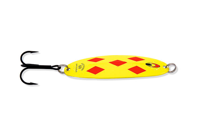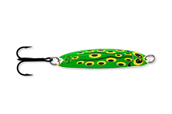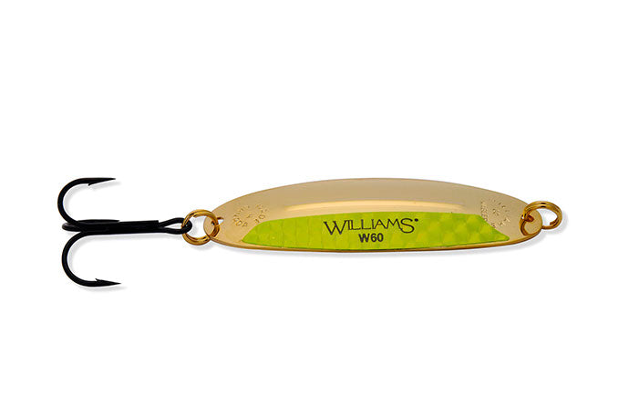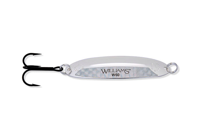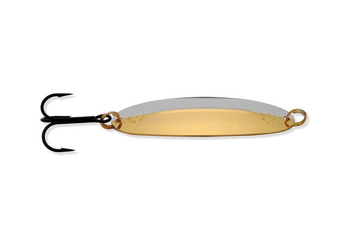 The Williams Wabler is the lure that founded the fishing tackle division of the Williams Company more than 100 years ago. The most recognized and still today the most popular model in the Williams series, the Wabler has been a mainstay of anglers. Originally popular as a lake trout spoon, the Wabler has proven itself, as the photo gallery of past literature will attest to, on a multitude of species including; rainbows, browns and all members of the trout family. A northern pike favourite, musky, walleye and salmon as well as salt water species in coastal waters. The Wabler, like all Williams lures, is stamped from premium polished brass. A multi-step plating operation then applies the genuine Silver and/or 24K Gold finishes that Williams lures are renowned for. These are not standard Silver and Gold finishes either. The final step in the Williams plating process incorporates a further plated “electroclear” outer coat which is then baked on. This process does not dull the finish as a laquer would. It does render Williams Silver and 1/2 & 1/2 finishes saltwater resistant and basically tarnish proof. The Wabler is a versatile spoon which works equally well at a wide range of speeds due to its stabilizing ridge and shape. The ridge which has become a trademark of Williams lures prevents the Wabler from rotating without changing the proven shape and action of the lure. This ridge works so well that Williams was awarded a US and Canadian patent for it. One of the few patents ever awarded to a spoon. Time tested and proven, a true Canadian classic with worldwide recognition.