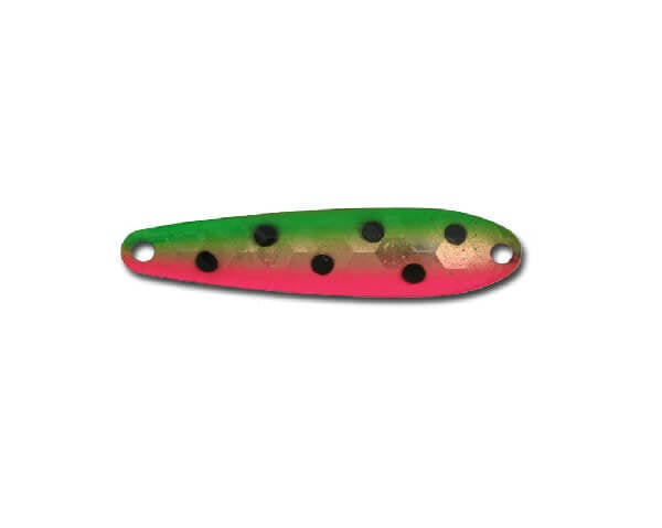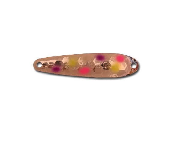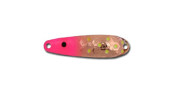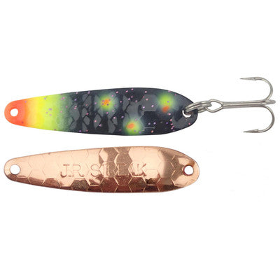 Mini Streak Spoons are constructed of high quality brass with genuine gold plating, genuine copper plating or colorful paints on select colors. Mini Streak Spoons come in a variety of the hottest fish-catching colors, with select colors featuring ultra-glow UV coating and strong stainless steel ring.