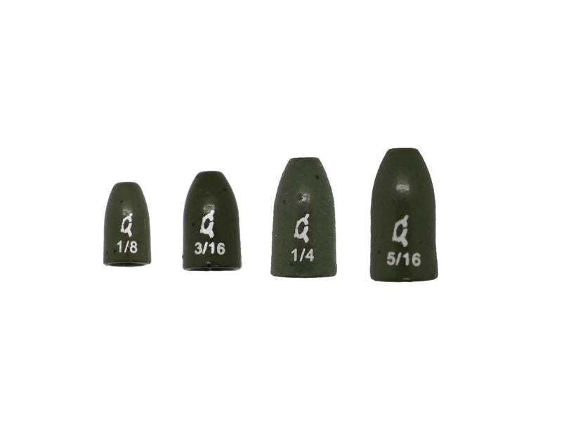 Made from 97%, Eco-Friendly, Pure Tungsten, X Zone Tungsten Worm Weights present in a traditional shape and are available in two colors: Chip Proof Matte Black and Green Pumpkin. Tungsten worm weights are 40% smaller than lead product and this gives them a smaller profile for easier vegetation penetration and a stealthier overall profile. The density of tungsten material increases sensitivity and feel significantly resulting in you detecting more bites and catching more fish!
