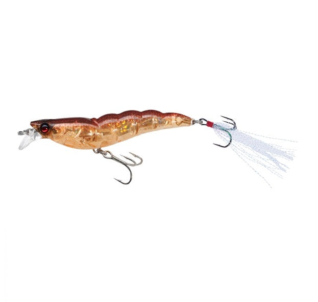 The newly updated Yo-Zuri Crystal 3D Shrimp is a realistic looking hard bodied lure featuring an internationally patented 3D Prism Internal Finish. This lure produces a brilliant shine that reflects like facets of a diamond, flashing in all directions, attracting fish from far distances. Additional finishes include Ultra Violet accents and glow-in-the-dark patterns, for any water condition. The lifelike rubber legs, pulsating and tough holographic Mylar tinsel tail, and slow falling action completes the look of a real swimming shrimp.