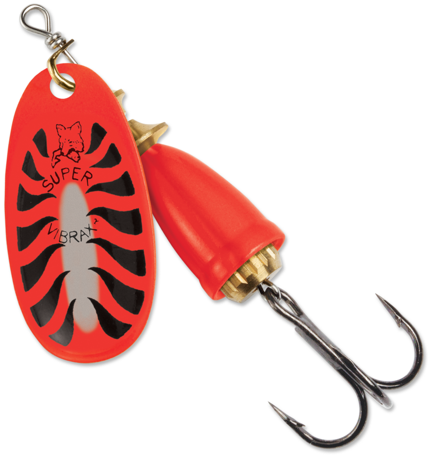 Runs 2 feet to 6 feet. The patented two-part body emits low-frequency sound vibrations that attract fish and trigger strikes while virtually eliminating line twist. The Classic Vibrax® gets a tasty candyback! Colored bell is accented with metallic flecks. Blade is tipped in matching color, while blade back is finished with transparent, fluorescent coordinating color. Flaw-free silver plating, fine tolerances and super-sharp hooks are long-standing features of this low frequency emitting patented two-part body spinner.