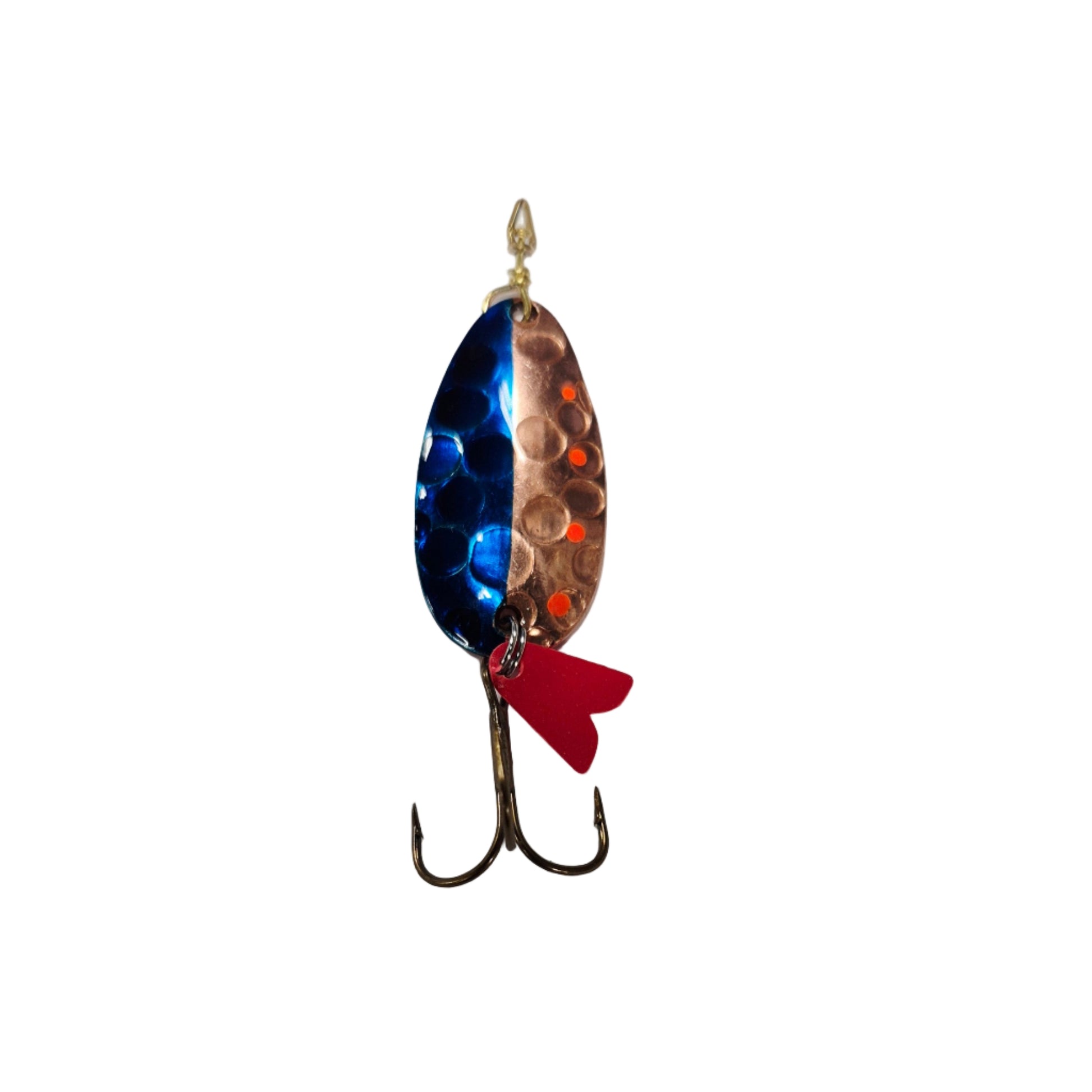 EGB Fishing spoons, or “Blinkers”, are made of solid brass and feature a built-in French swivel that eliminates line twist and produces a natural and irresistible wobbling action.