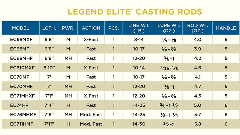 St. Croix also designed the Legend Elite to feature the Super High-Modulus SCVI carbon with FRS in the lower section for amazing power and strength to go along with reduced weight.