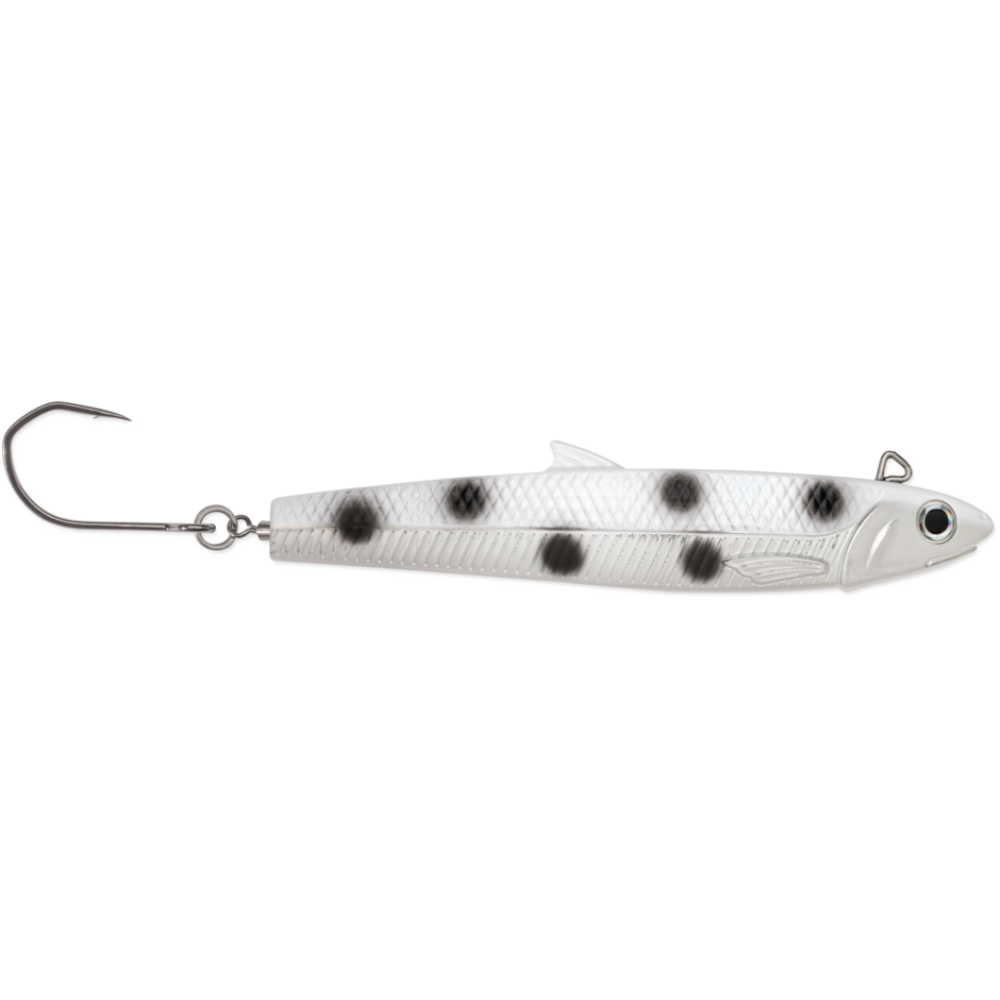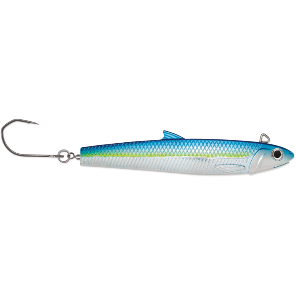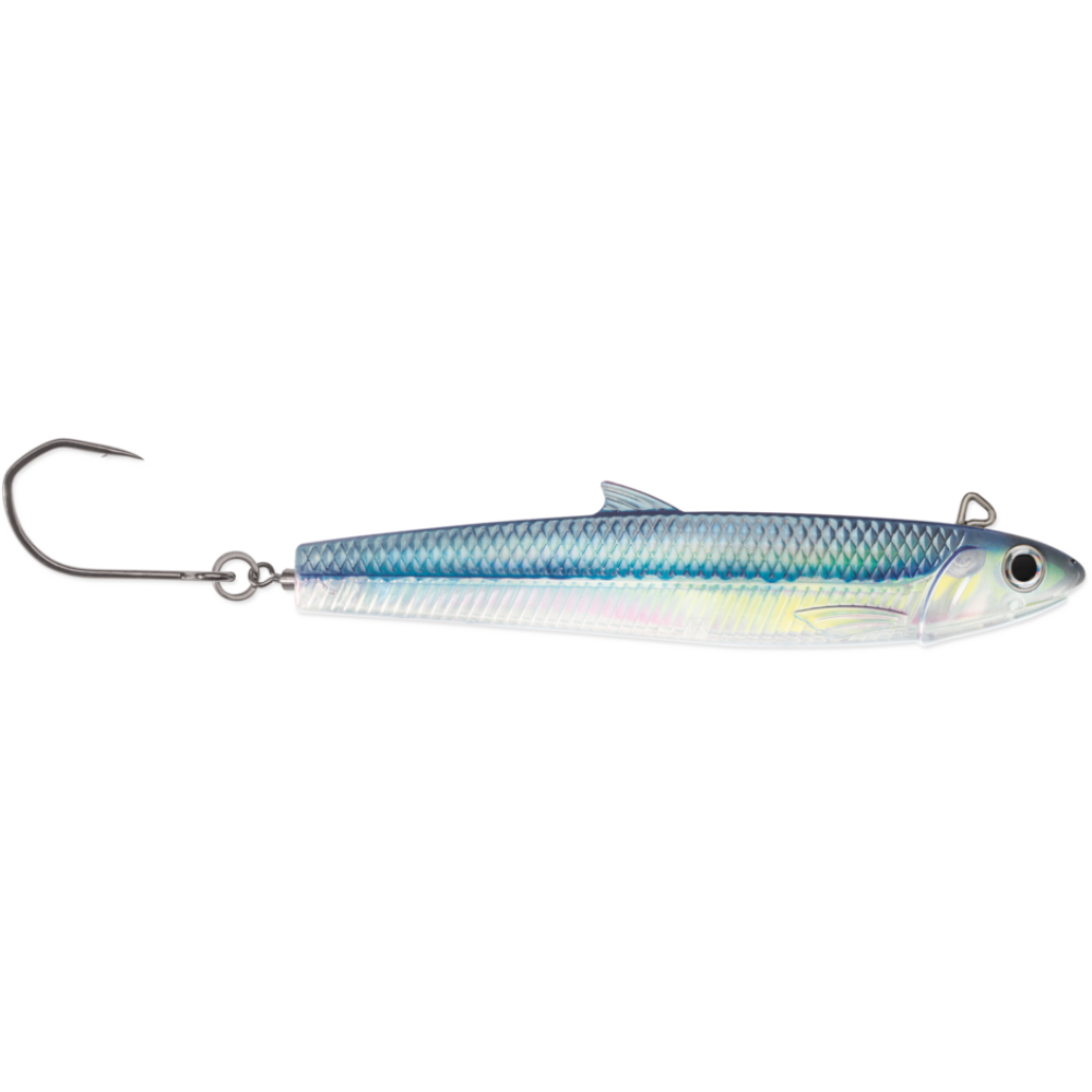 - Flared silver cheek mimics feeding anchovy