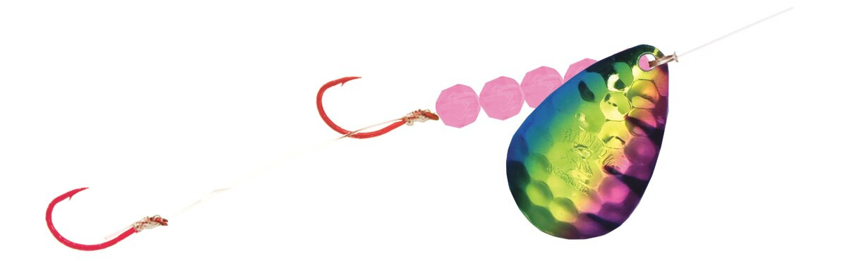 • Hand-snelled with a tough and transparent 17#, 60” Bionic® leader, premium Salmon-Egg hooks, meaty #6 facetted beads and throbbing magnum “metallic fish scale attractor blade"