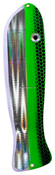 Developed by O'Ki Tackle to give the impression of fish on the feed making it one of the hottest attractors available. Produces a tight roll between 1 1/2 to 4 mph without any appreciable change in it's tail "swoop" action. All Flashers come with 2 Ball Bearings Swivels and welded Nickel/Silver Rings.