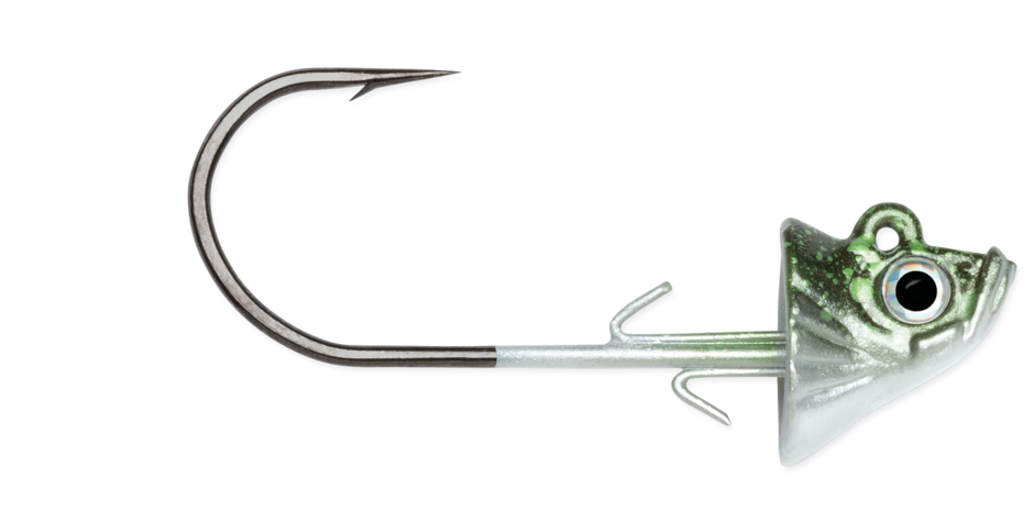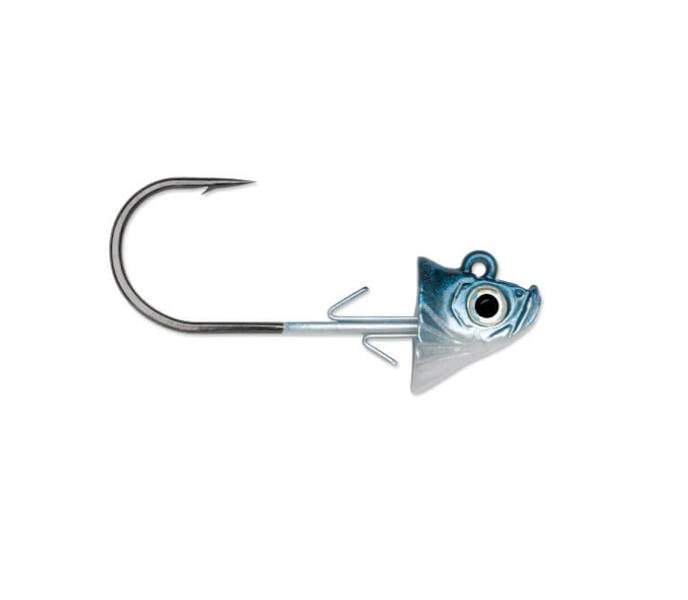 The VMC® Swimbait Jigs ad the final touch to the illusion of a live minnow. Designed to mimic a baitfish head, they feature flared gills,3D holographic eyes and a concave head that allows your swimbait to nest up tight to the jig. Equipped with a forged shank, hi-carbon steel, 1X strong hook and a double wire keeper to ensure your bait stays on.