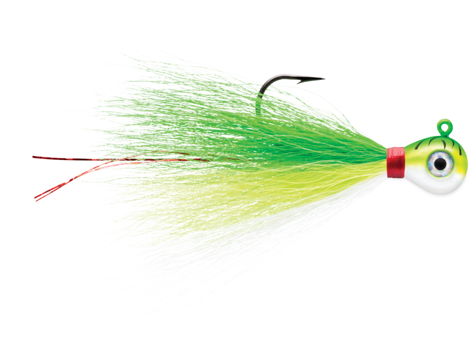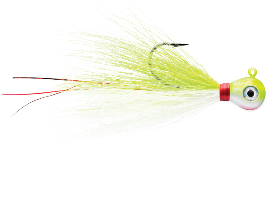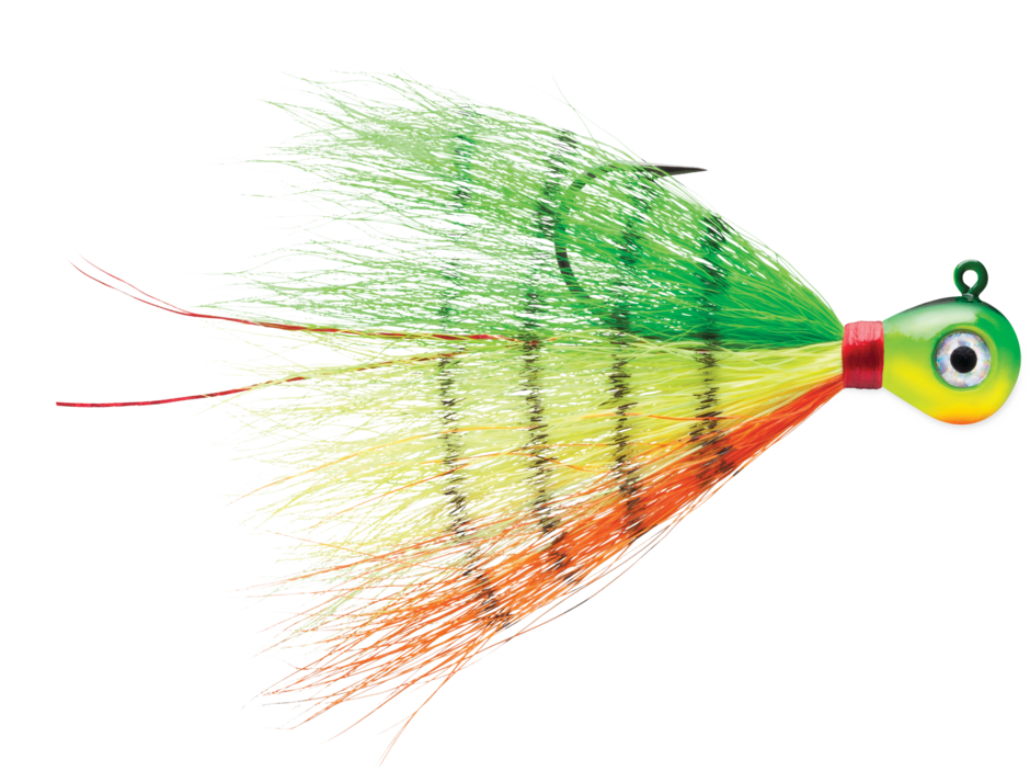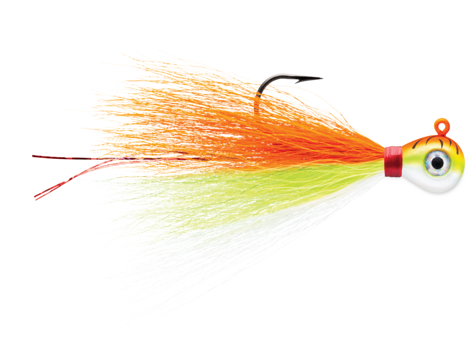 - Premium Hi Carbon Steel chemically sharpened Needle Point hook and bucktail with tinsel fibers enhance visual attraction.