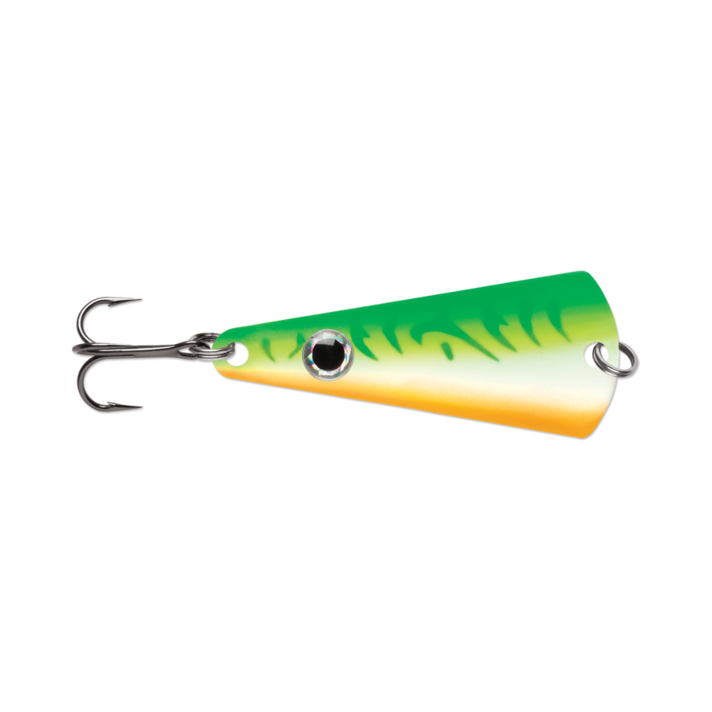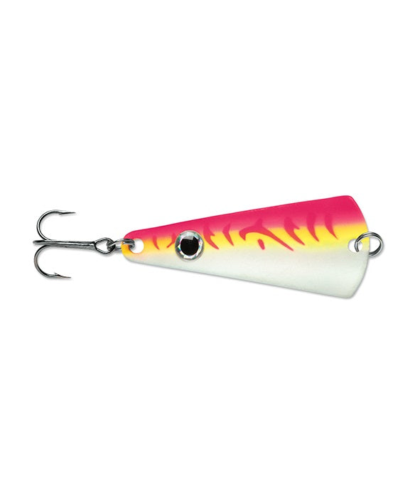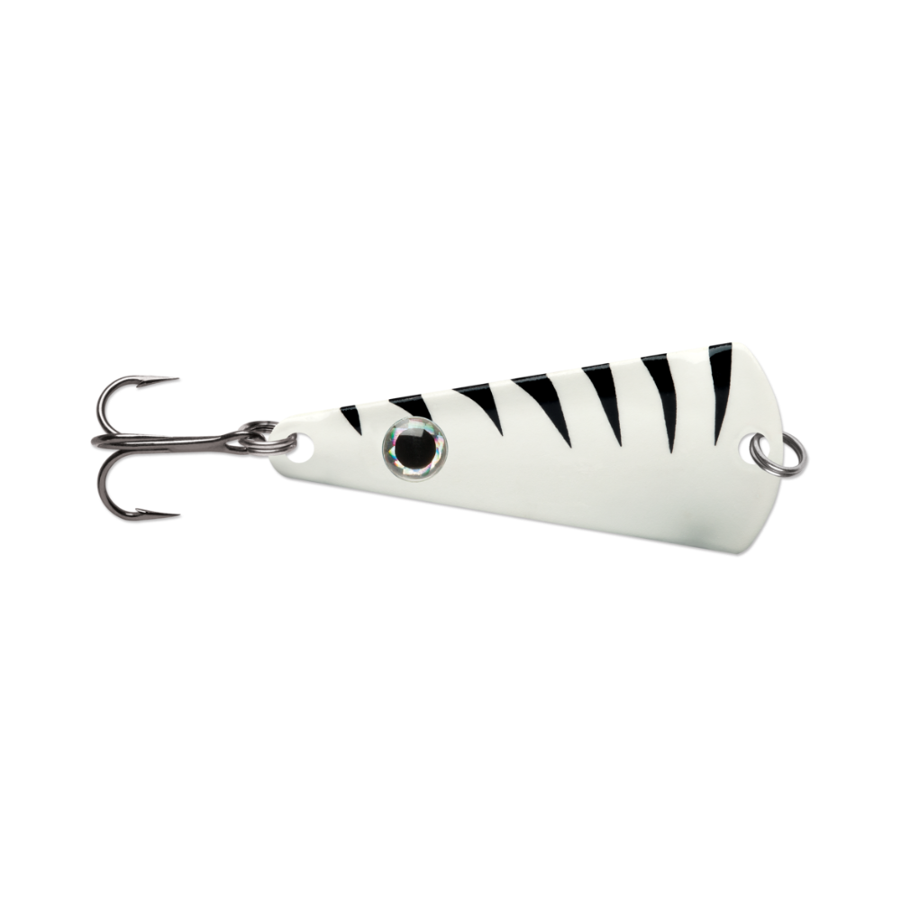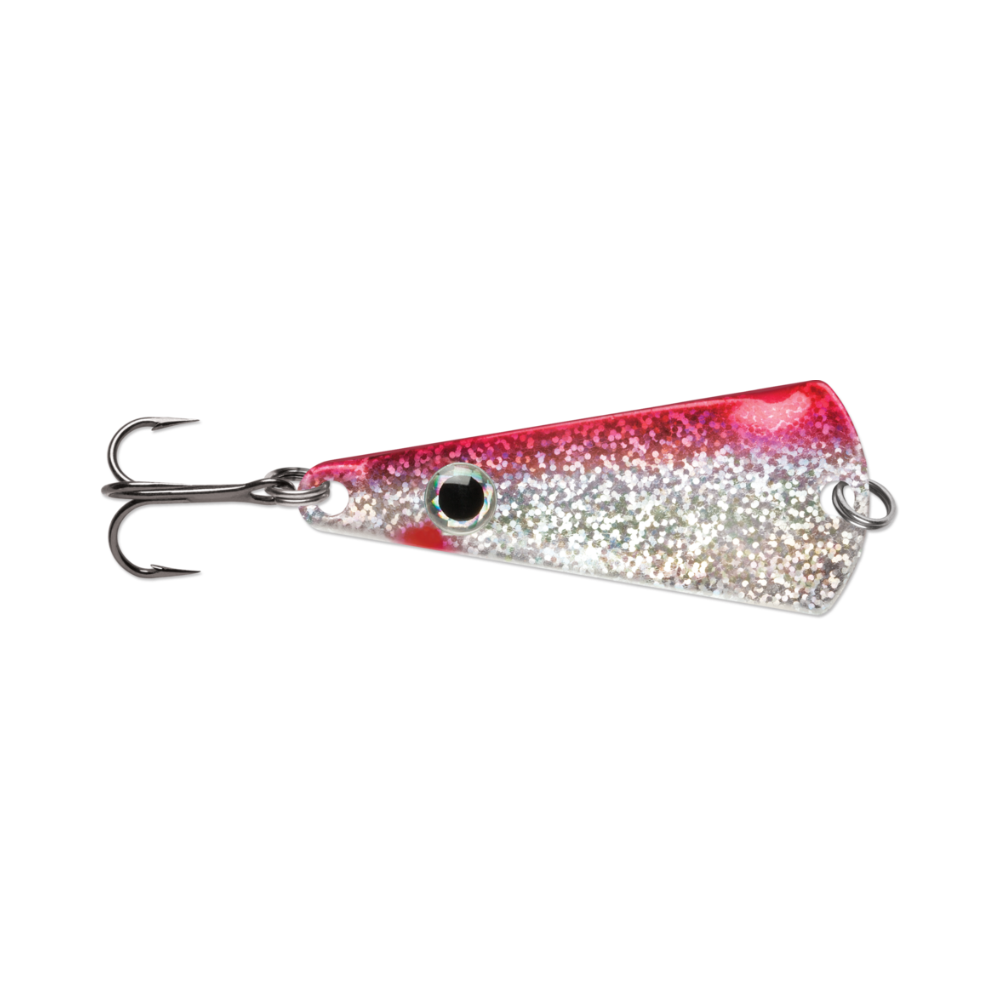 The VMC Tingler Spoon’s unmatched wide wobbling action exaggerates the movement of dying baitfish with its unique curved body and V-Shaped design. Large holographic eye, wide variety of holographic attractor and live baitfish patterns increase your odds of catching more fish! And just when you think it’s time to re-charge rest assured the VMC Ultra Glow colors lasting up to 15 minutes means more time underwater and less time out.