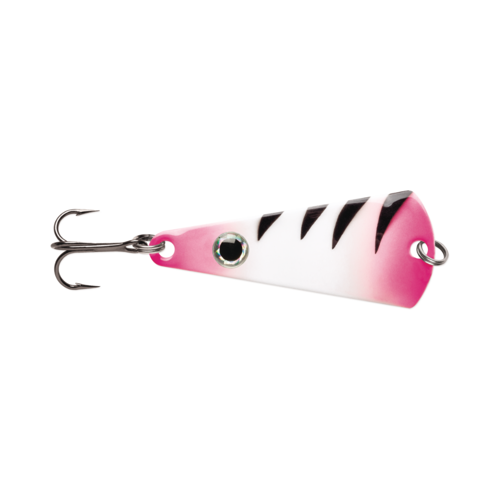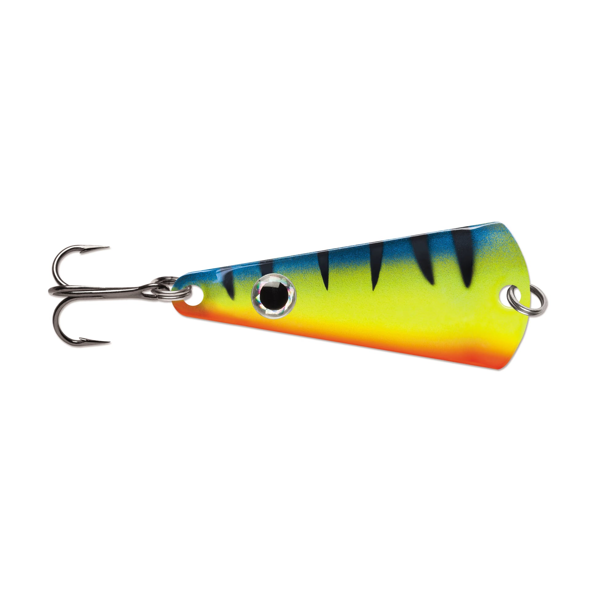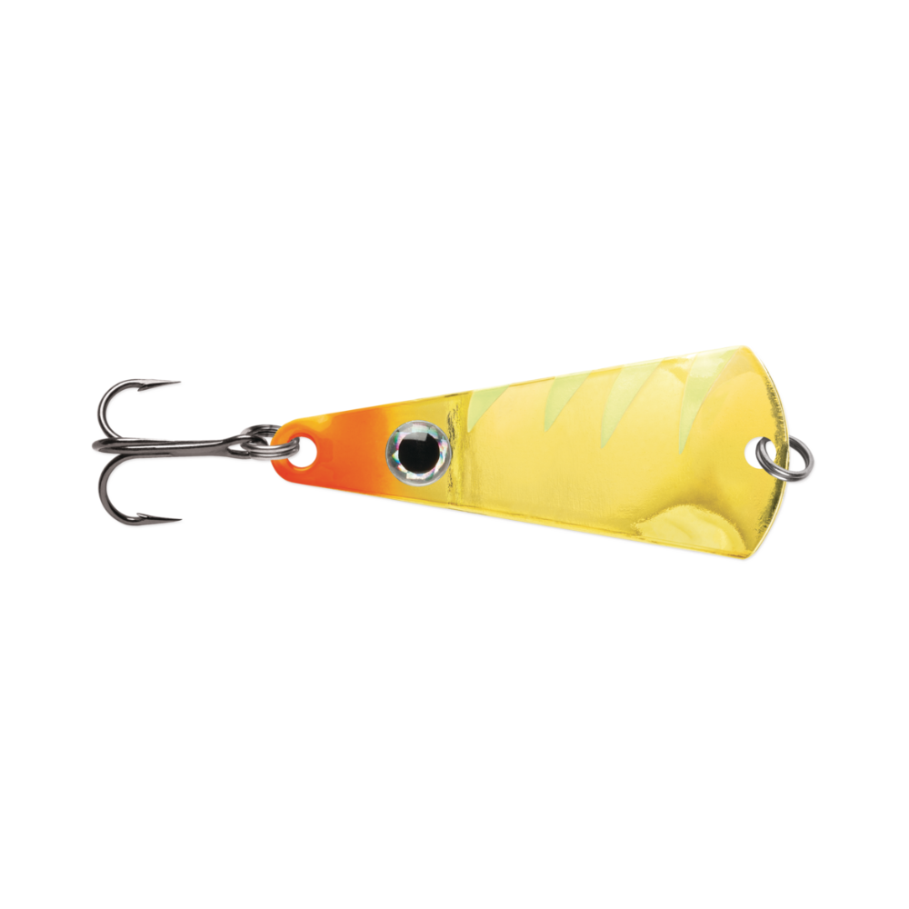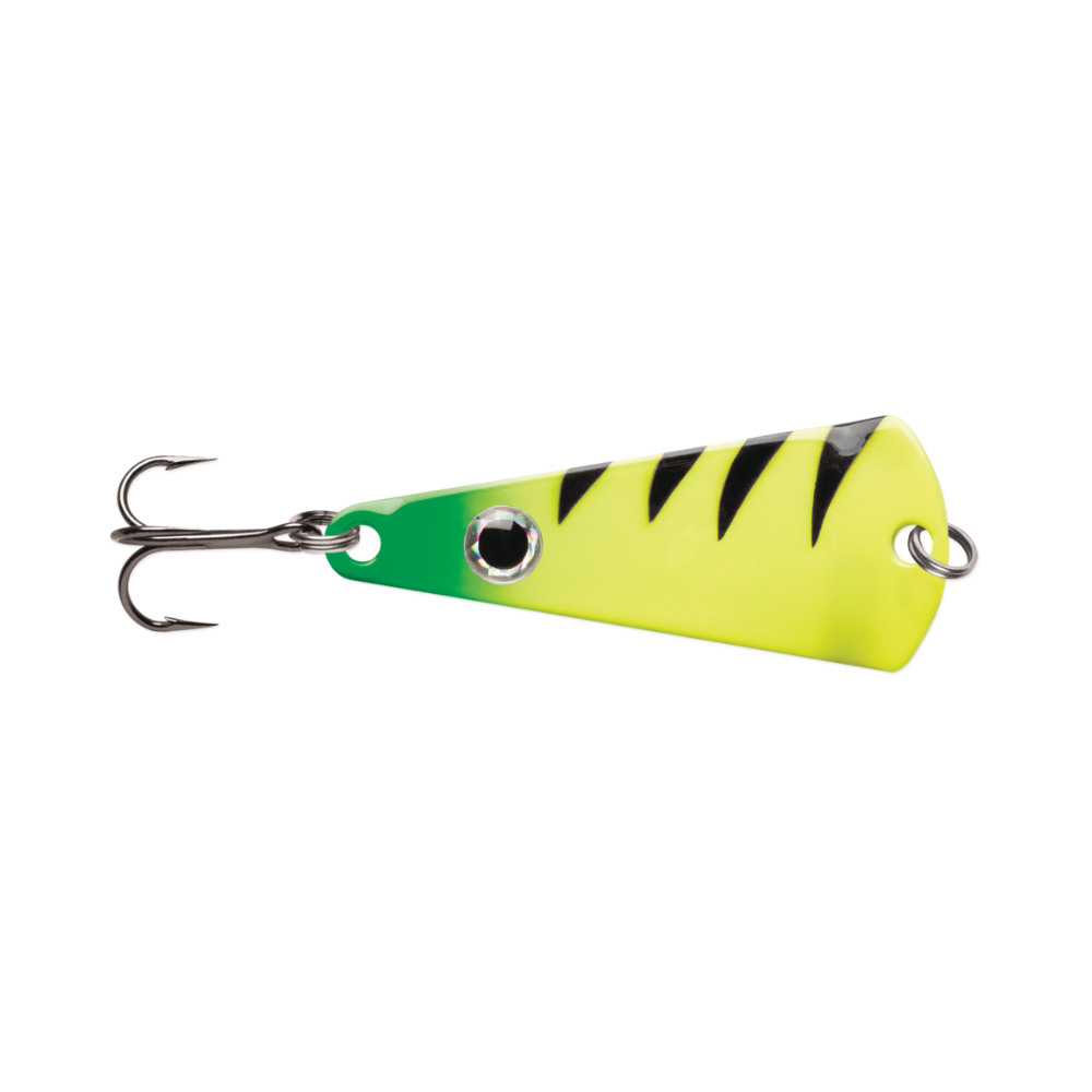 The VMC Tingler Spoon’s unmatched wide wobbling action exaggerates the movement of dying baitfish with its unique curved body and V-Shaped design. Large holographic eye, wide variety of holographic attractor and live baitfish patterns increase your odds of catching more fish! And just when you think it’s time to re-charge rest assured the VMC Ultra Glow colors lasting up to 15 minutes means more time underwater and less time out.