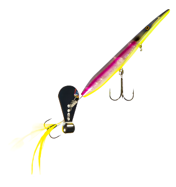 - Exclusive bladed, tail-propelled design represents a completely original surface lure category